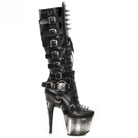 NEW ROCK M-Devil010-C1 GOTHIC BLACK LEATHER High Heel Boots WITH METAL SOLE AND HEEL SPIKED AND STUDDED