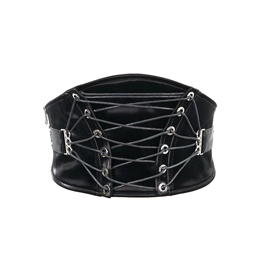 Black High-Gloss Vegan Leather Lace-Up Corset Belt