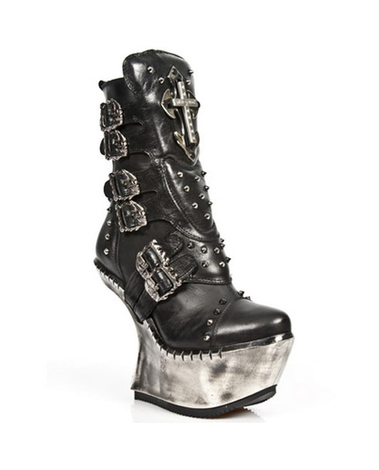 Heelless Heels NEW ROCK GOTHIC M.Ext005-C1 Black leather boot STUDDED WITH CROSS PUNK ROCK