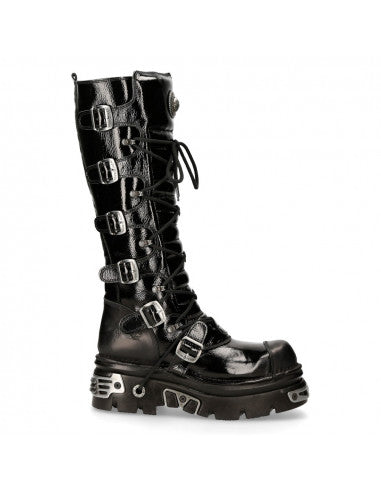 NEW ROCK GOTHIC BLACK SHINY LEATHER HIGH BOOT METALLIC m-314-c1