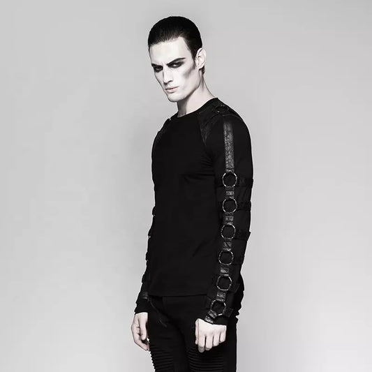 Gothic Cotton Top Heavy Metal Ringed Long Sleeve T-shirt