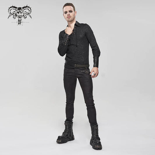 Goth Punk Men's Rubberized Cracked Textured Pentagram Fitted Trousers