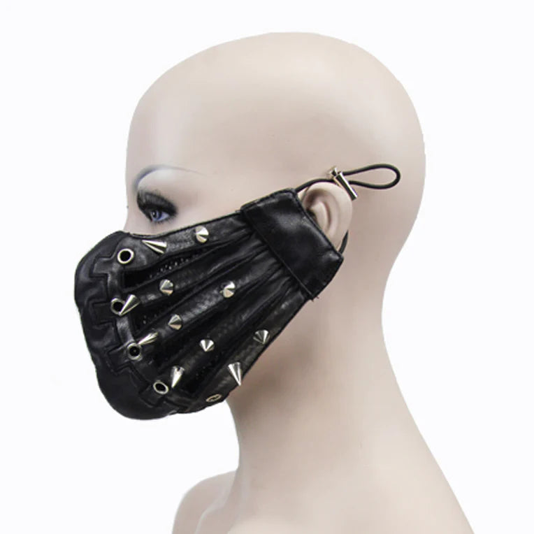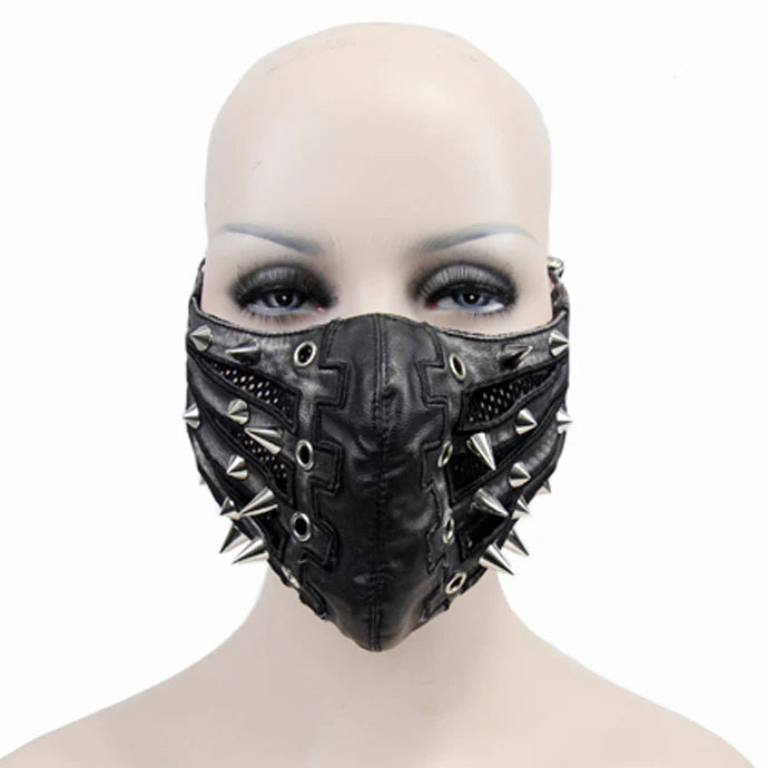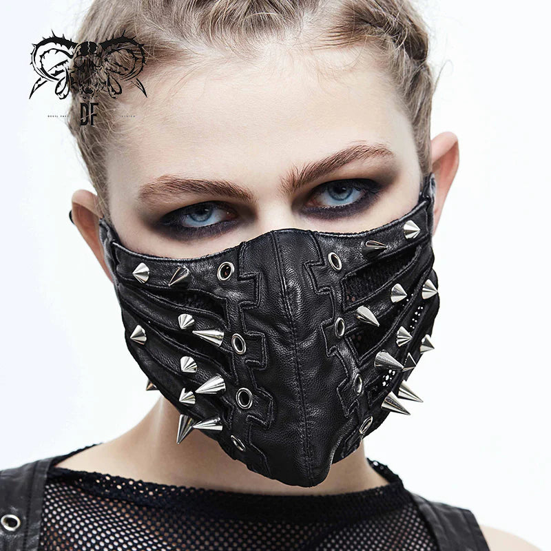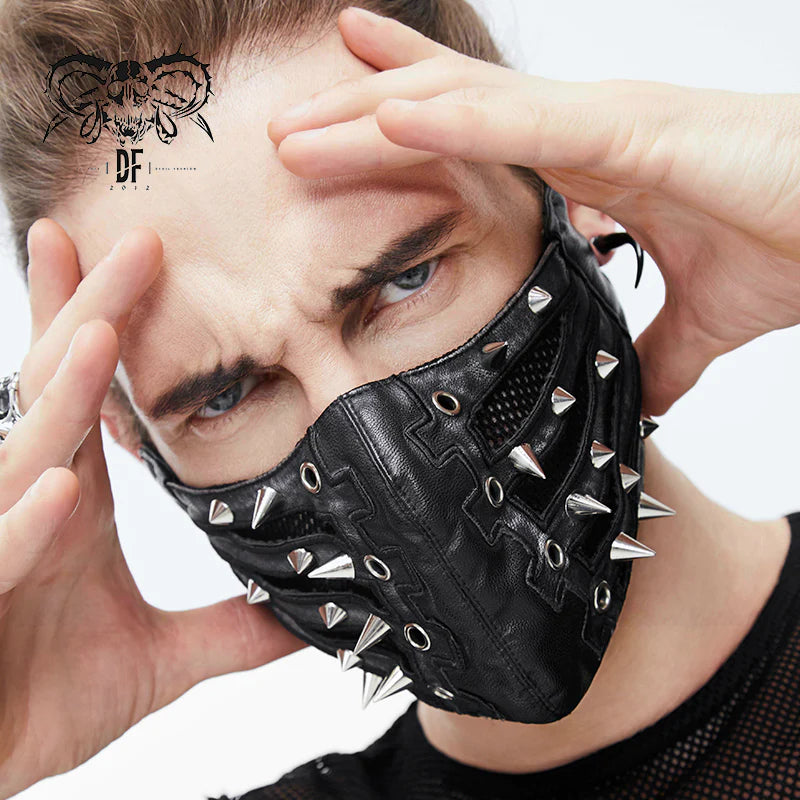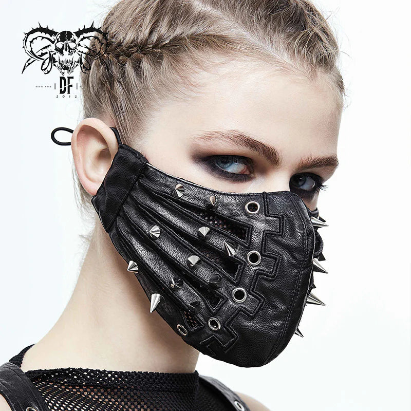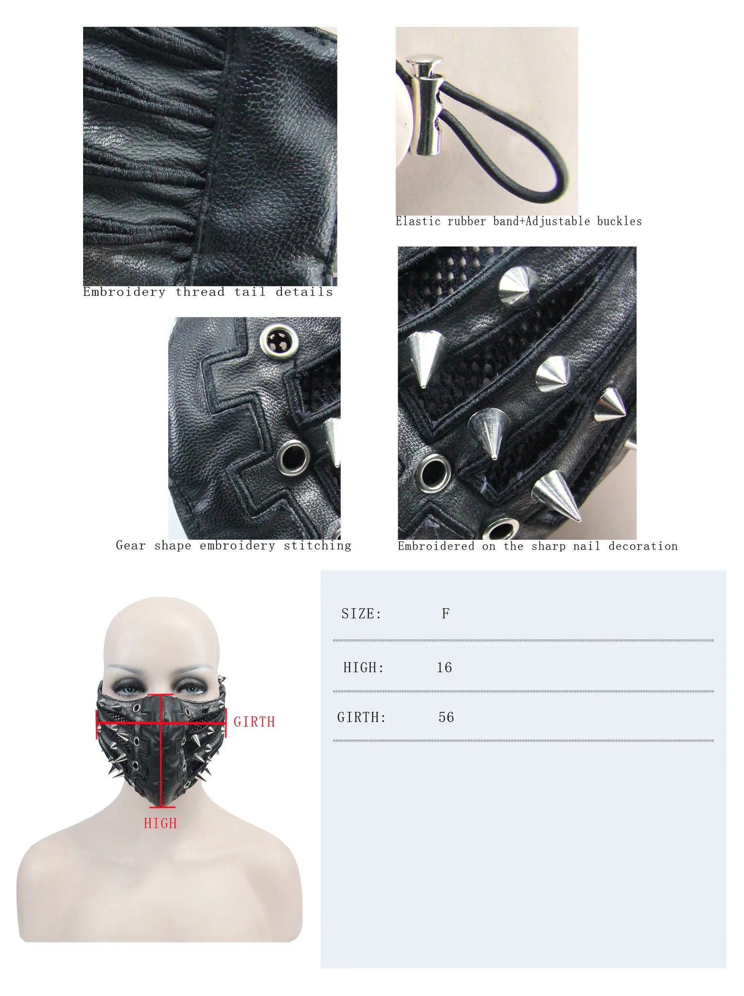 - Black and silver hand-rubbed leather and diamond mesh are stitched together in the shape of gears by using embroidery techniques.
